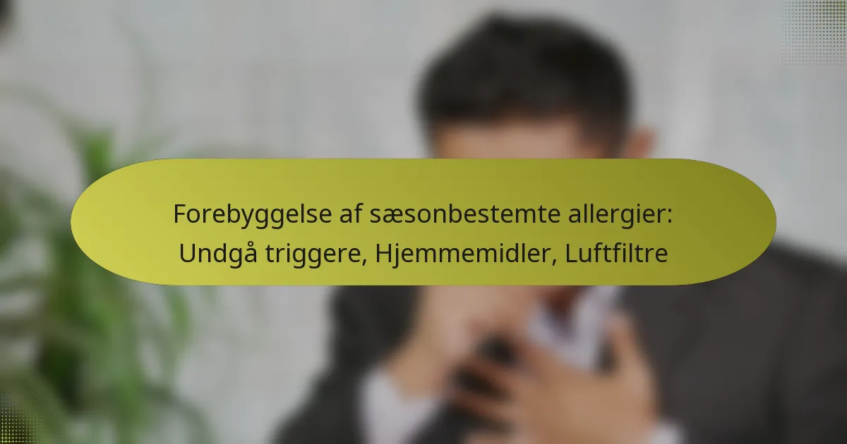 Forebyggelse af sæsonbestemte allergier involverer en kombination af strategier, der sigter mod at reducere eksponeringen for allergener og styrke dit immunsystem. Ved at implementere praktiske foranstaltninger kan du betydeligt mindske virkningen af pollen og andre allergener i højsæsonerne.